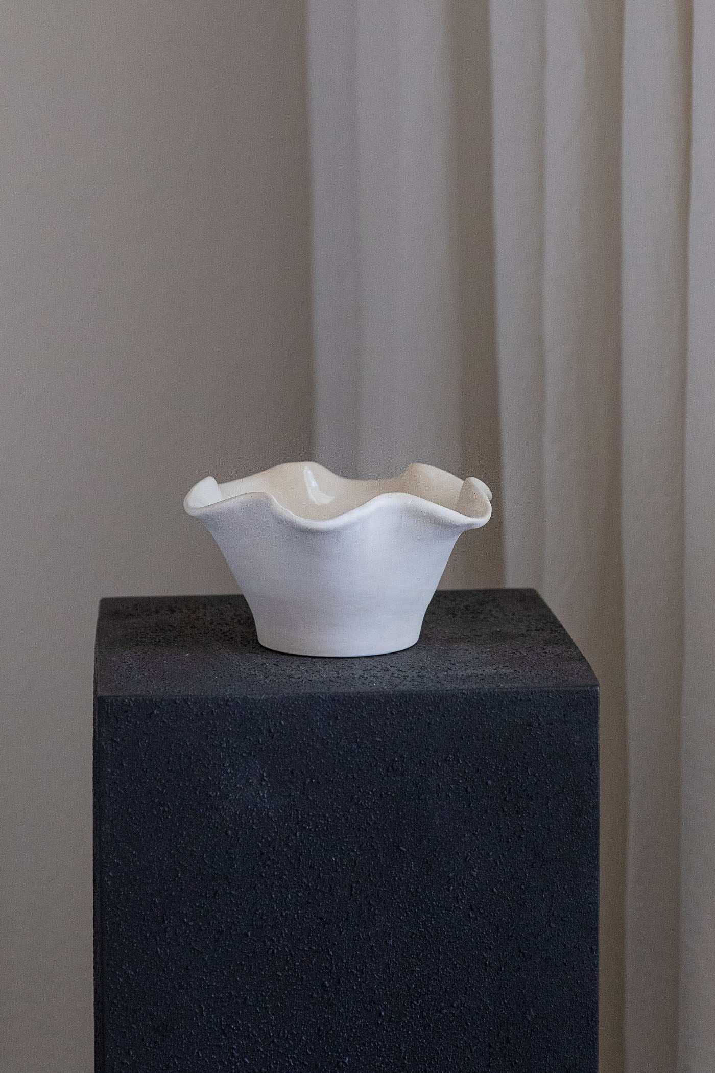 Flutter bowl test. Stoneware clay is wheel thrown and altered. Testing colors for my flutter bowls Has brushed yellow with dots inside. Food safe.