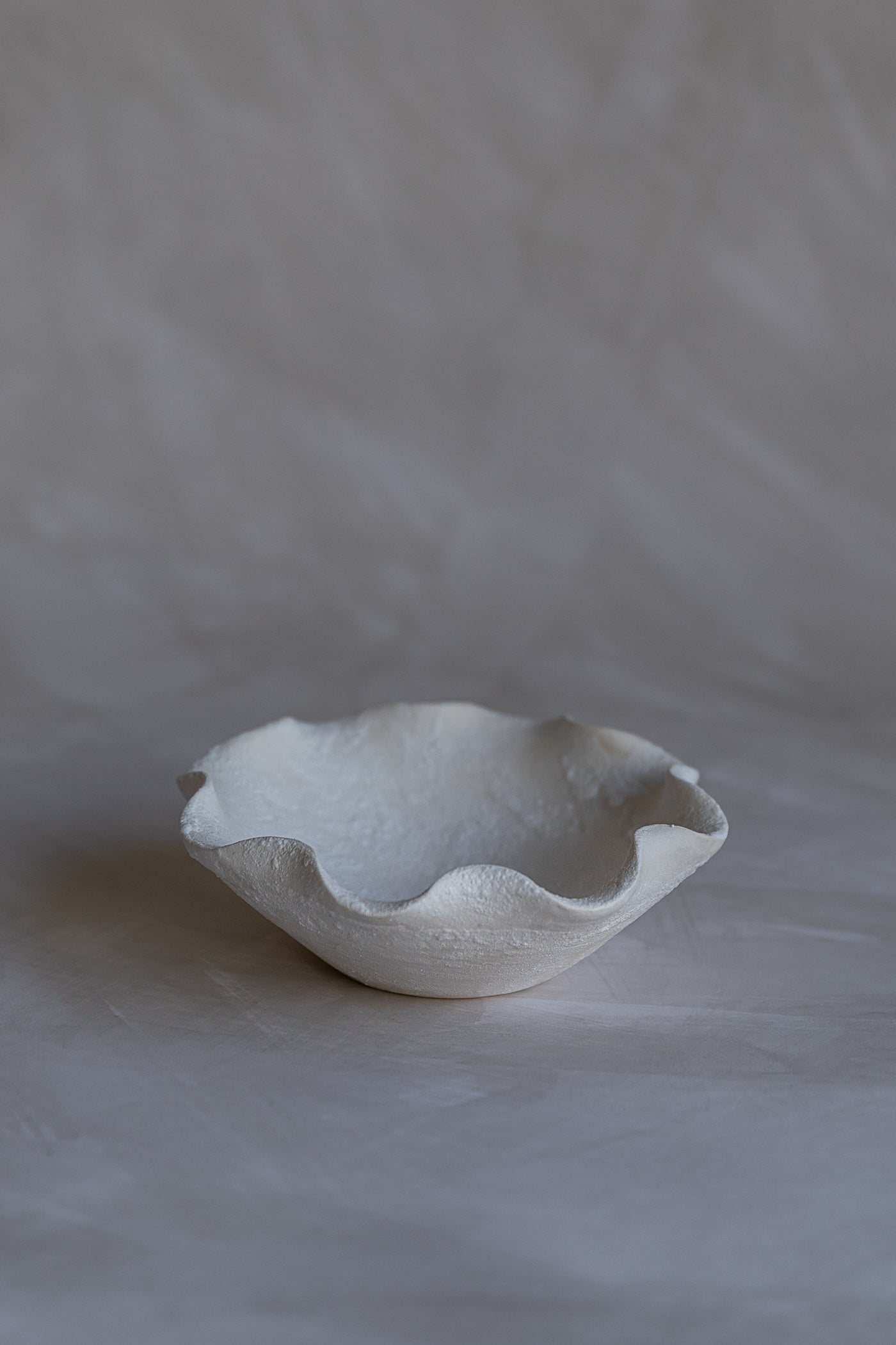 Inspired by the curve of a daffodil bloom frozen in an embrace of stone, the flutter bowl has a low profile shape that is perfect for keys, small fruit, or even floral arrangements.