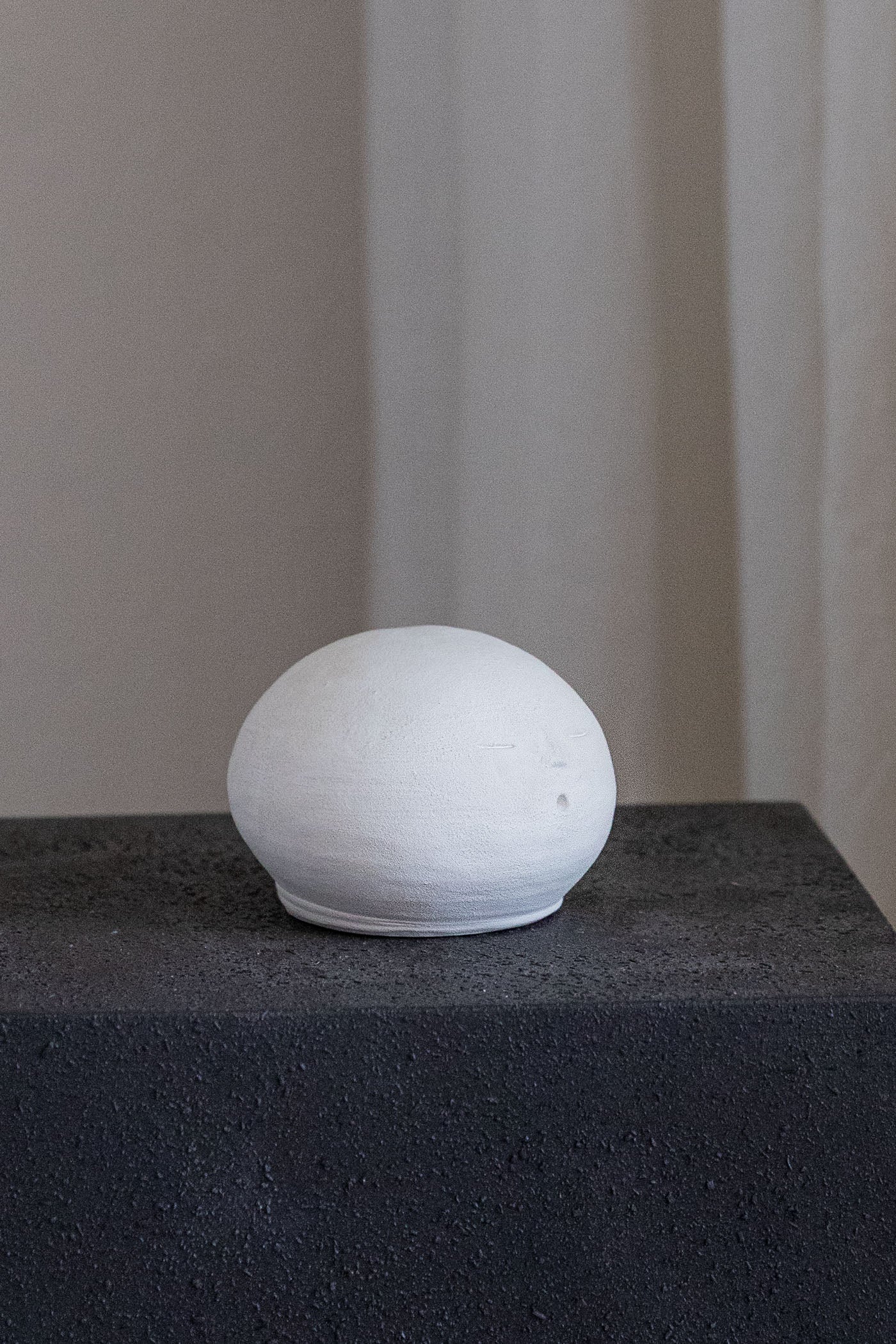 Mini moon test. Stoneware clay is wheel thrown and altered to add facial features. Testing glaze for future collection.